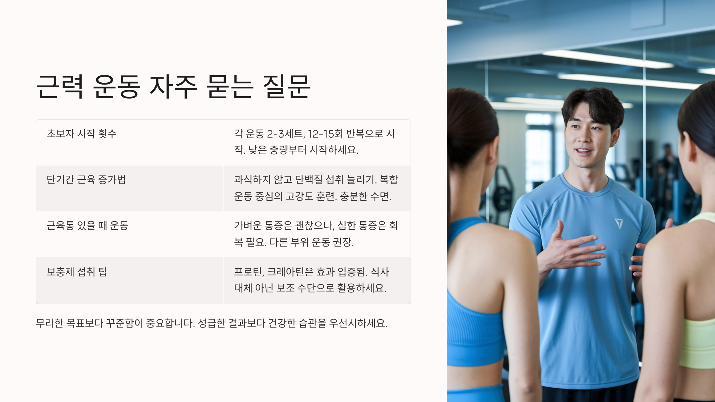 무게 욕심은 금물! 처음에는 정확한 자세와 자극 위치를 먼저 익히는 게 훨씬 중요해요. 거울 앞에서 천천히 반복하면서 근육의 수축과 이완을 직접 느껴보세요. 🎯