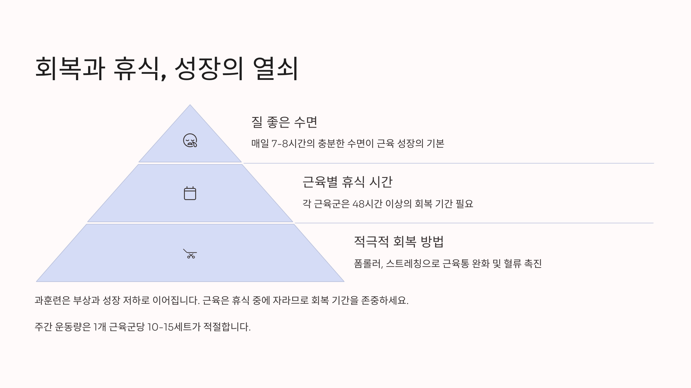 운동만큼 중요한 게 바로 회복과 휴식이에요. 근육은 '운동 중'에 만들어지는 게 아니라, '운동 후' 휴식할 때 성장하거든요. 아무리 열심히 해도 제대로 회복하지 않으면 효과가 반감돼요. 😴