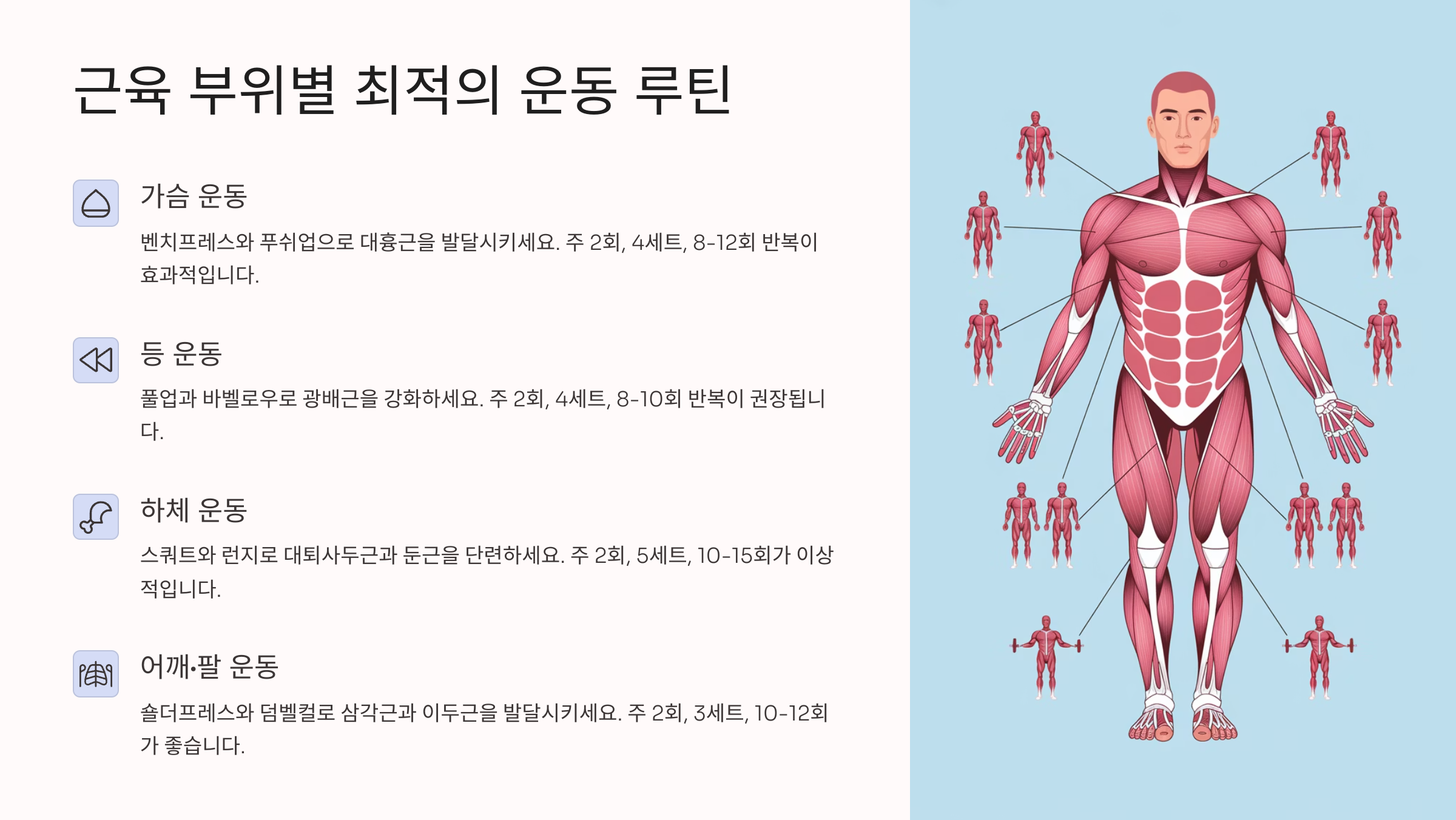 자, 그럼 이제 본격적으로 근육 부위별 운동 루틴을 함께 구성해볼까요? 다음 섹션부터 실제 루틴과 분할 방법까지 하나씩 알려드릴게요. 🚀