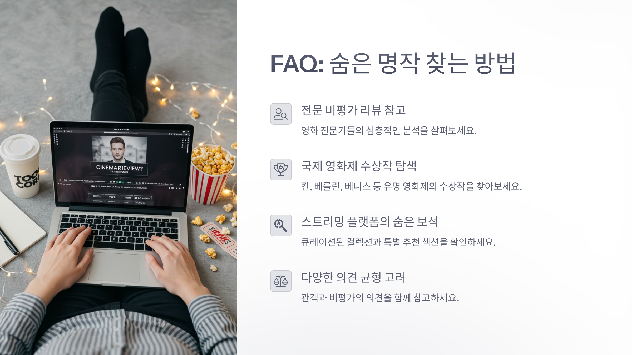 넷플릭스에서 이런 영화들을 찾으려면 ‘검색’ 기능을 적극 활용해야 해요. 또는 비슷한 분위기의 영화를 본 뒤 나오는 추천작에서 발견되기도 하고요. 커뮤니티나 평론가 리뷰, 시네필들의 추천도 참고하면 좋아요. 📚